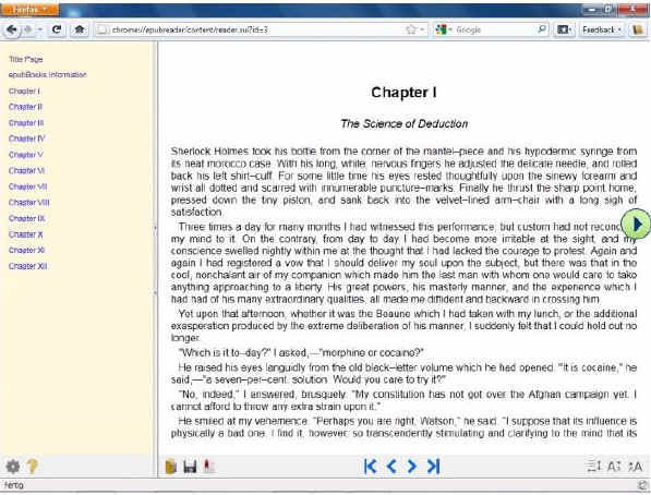 The ePub TOC is displayed in a column along the left hand side of the book for easy access at any time, and
